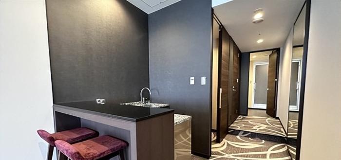 而全館最頂級的「邊間房」(Corner Suite Room)達80平方公尺,有雙人、雙床兩種選擇,房內有獨立的沙發起居空間及臥房,兩側大片窗景能遠眺不同風情的都會景緻,房內設計高雅別緻,還有簡約的流理臺及迷你中島,很適合邊賞夜景邊用餐,是情侶夫妻度假或慶祝紀念日的最佳選擇。