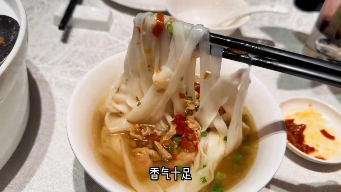 湖南米粉,我本來還看到他們家有個叫帶迅幹,它是湖南特色,但是帶迅乾沒有了。這個粉還是挺滑的不算彈牙,就是挺軟的一種米粉,剁椒裡那種剁椒,還有點小酸,它有酸豆角,剛才還有點小肉,有點酸辣。這個湯應該是熬的那種骨楊肉湯,湯也好喝。
