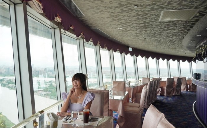 這家新開不到兩年,在年輕族群裡超火!(介紹) 標榜360度無死角,旋轉速度比星月旋轉餐廳快一些,大概70分鐘一圈,能感受到明顯移動(但不會暈)。裝潢走現代時尚風,大量使用玻璃和金屬,線條俐落,音樂也偏輕快,氣氛更活潑。最讚的是它的露天小平台(雖然風大時頭髮會群魔亂舞),拍照打卡一流!(地址) 台北市中山區 (這棟比較新,電梯速度超快,耳鳴感超明顯哈哈)