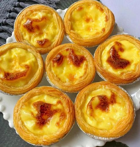 葡式蛋撻是澳門最具標誌性的美食之一,源自葡萄牙,但在澳門經過改良後風靡全球。它的特點是酥脆的千層酥皮,搭配香滑濃郁的蛋奶餡,表面微焦,口感豐富,甜而不膩。