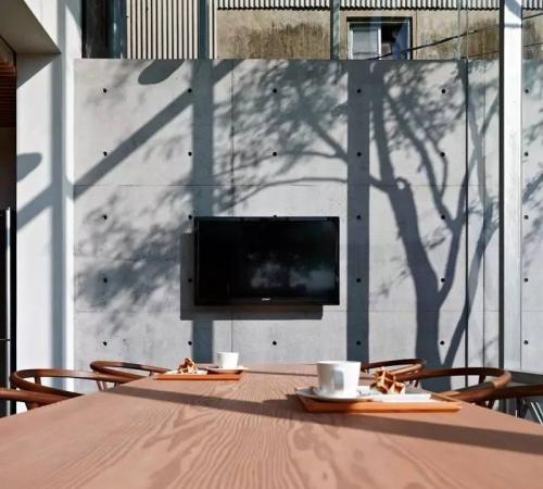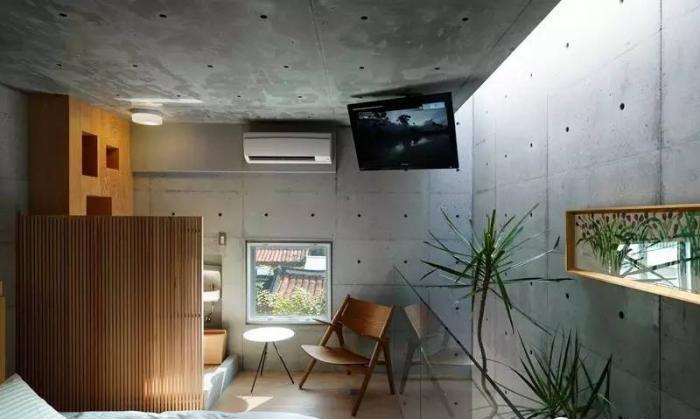 率性的清水混凝土電視牆,頗具工業時代美感。