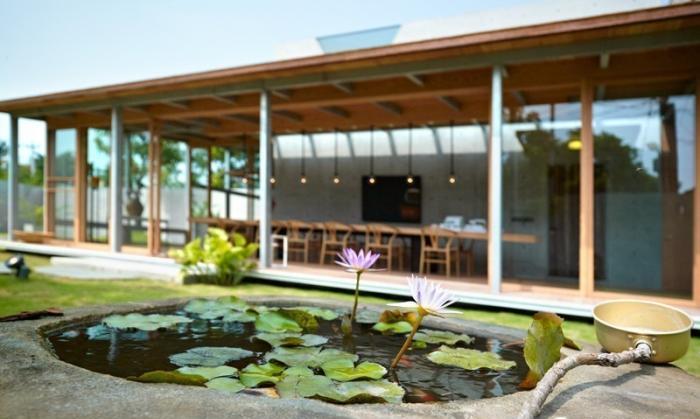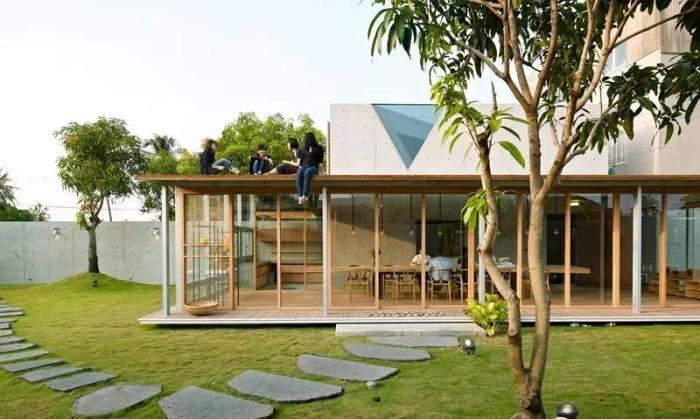 毛院外愜意的戶外空間,天好的時候,訪客都喜歡相聚在這裡,屋頂兼露臺的設計細節非常摩登。